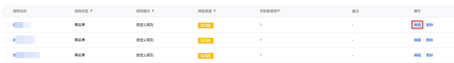 - 在 规则列表页面,找到需要修改的规则,单击编辑,进入编辑规则页面。