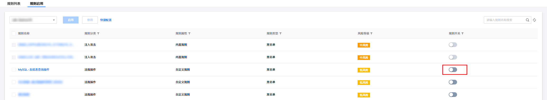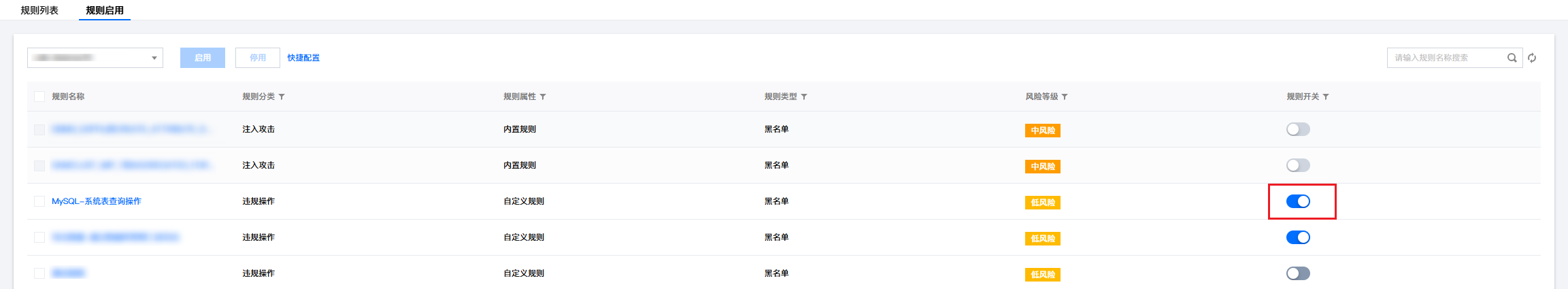 - 在规则启用页面,支持启用单个规则或批量启用规则。