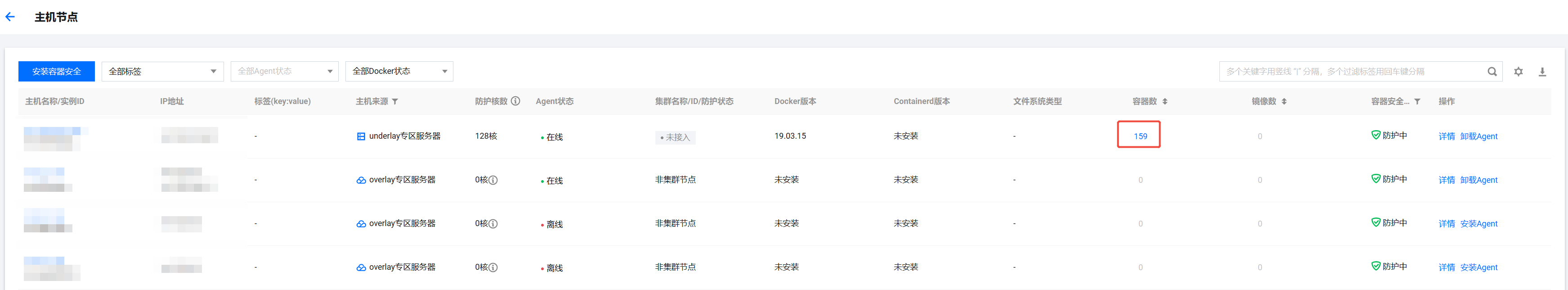 - 容器数:主机关联容器数。单击“数字”可查看关联容器详情。