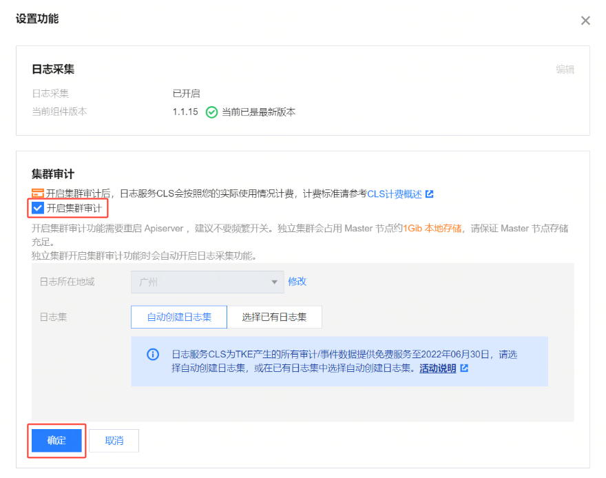 勾选开启集群审计,点击确定即可。