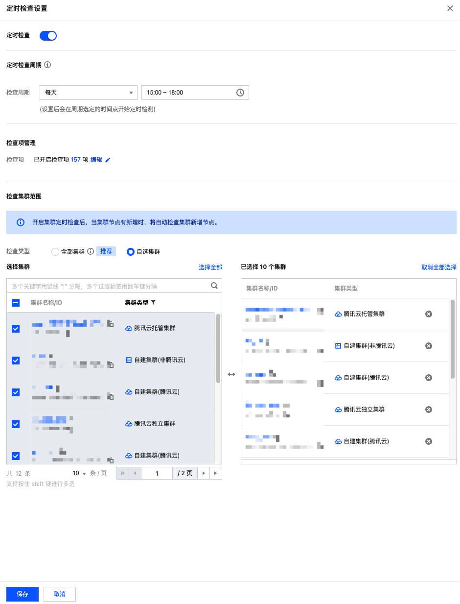 - 点击“定时检查设置”,可配置定时任务对集群进行安全检查。
