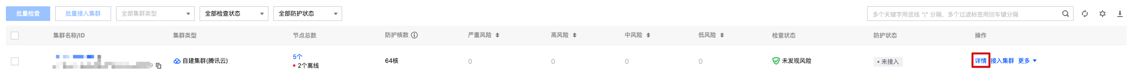 - 在集群检查页面,单击集群列表操作列的查看详情,进入“集群风险详情”页面。