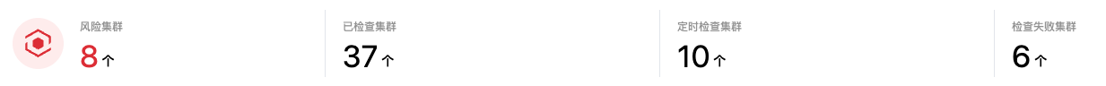 - 在集群检查页面,集群统计卡片展示集群总数、无风险集群数量以及未检查集群数量。