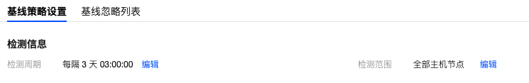 - 在基线策略设置页面,单击检测周期的编辑,弹出检测周期设置弹窗,可在检测周期设置弹窗中设定检测周期。