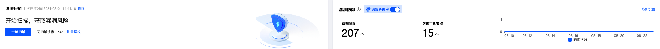 2. 在漏洞管理页面,可进行漏洞检测并查看漏洞检测数据,单击一键扫描