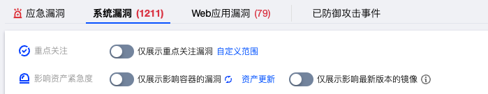 • 仅展示影响容器的漏洞:该选项控制过滤影响容器数量不为零的漏洞列表。