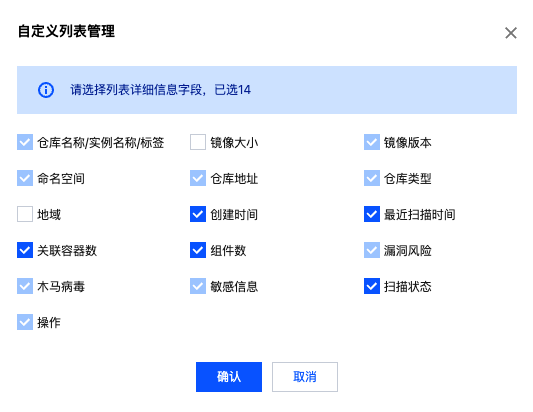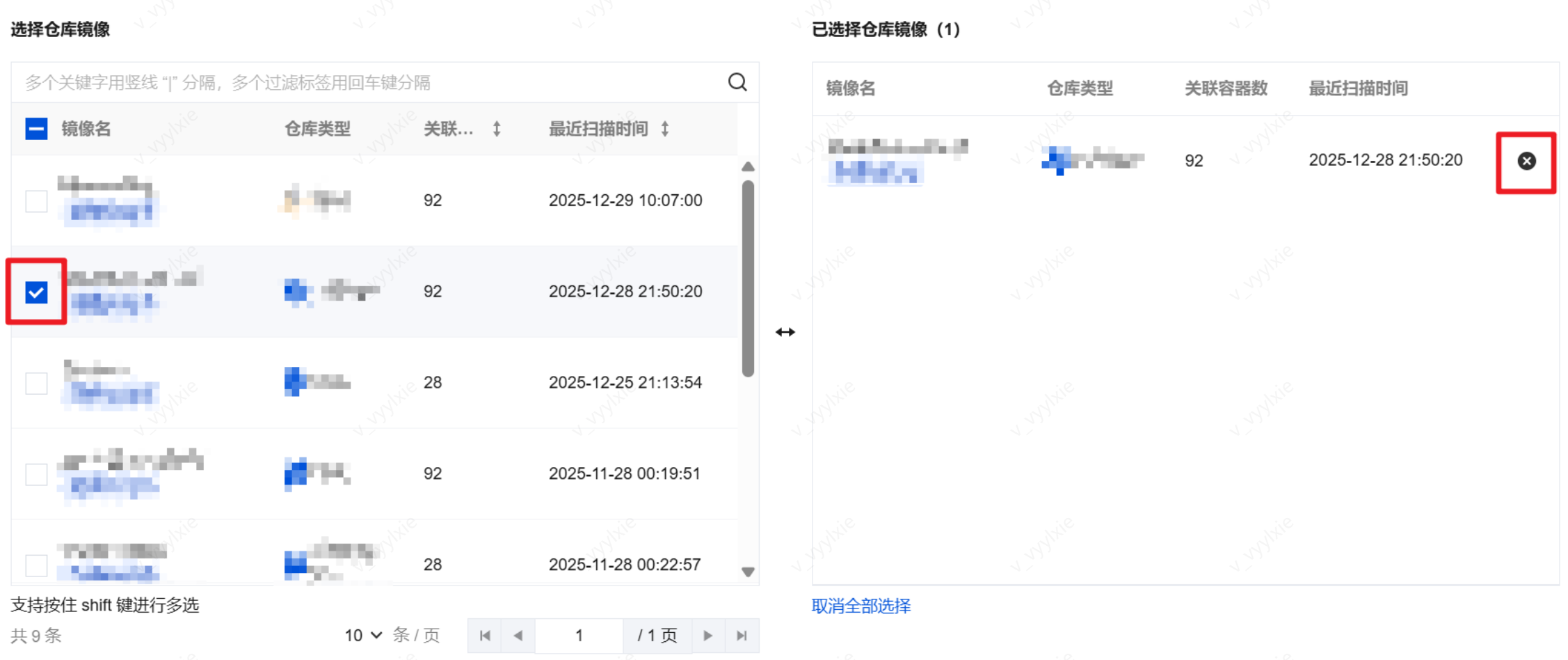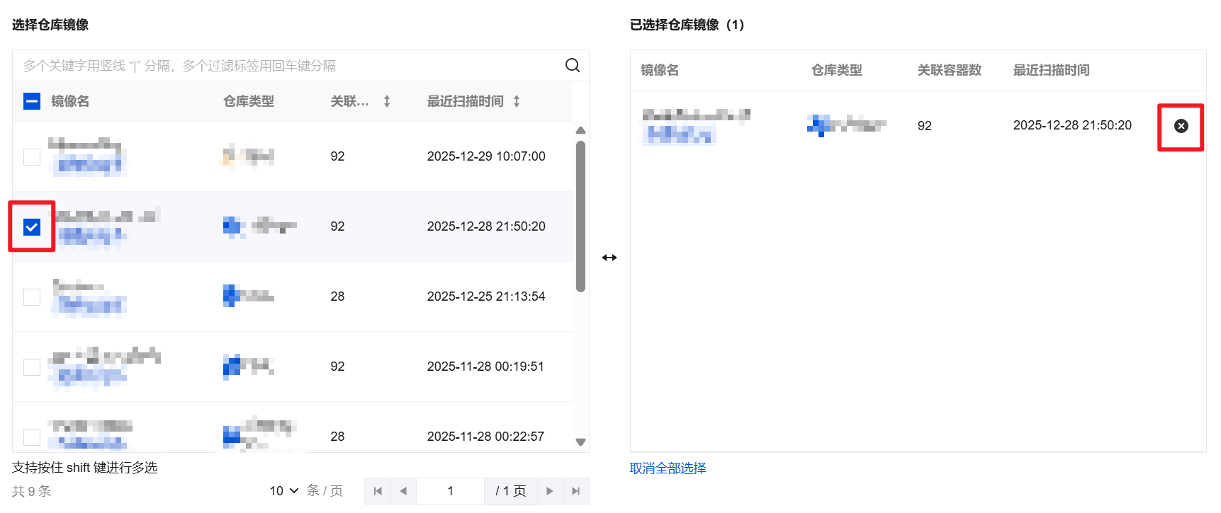 图标勾选所需的镜像仓库后,单击