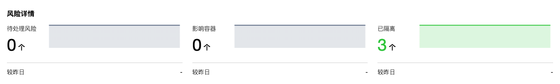 - 近一次扫描任务是否发现风险文件,如有发现,将展示风险文件数量、风险容器数量和扫描容器数量。
