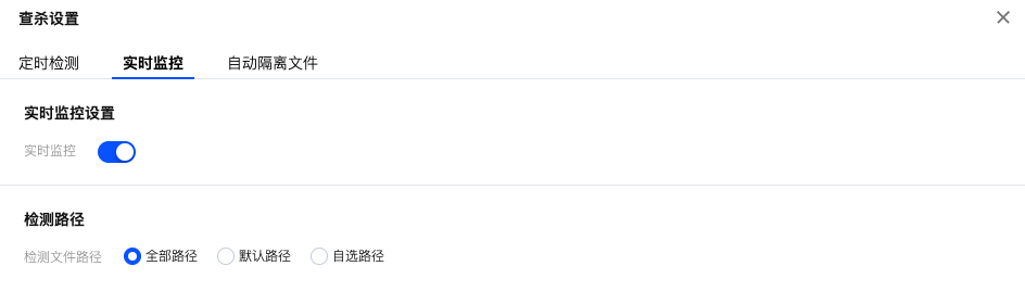 - 实时检测开关:支持通过单击“开关”,可开启或关闭实时检测功能。