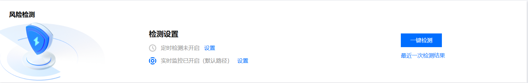 - 在风险检测模块,单击一键检测,进入一键检测页面。