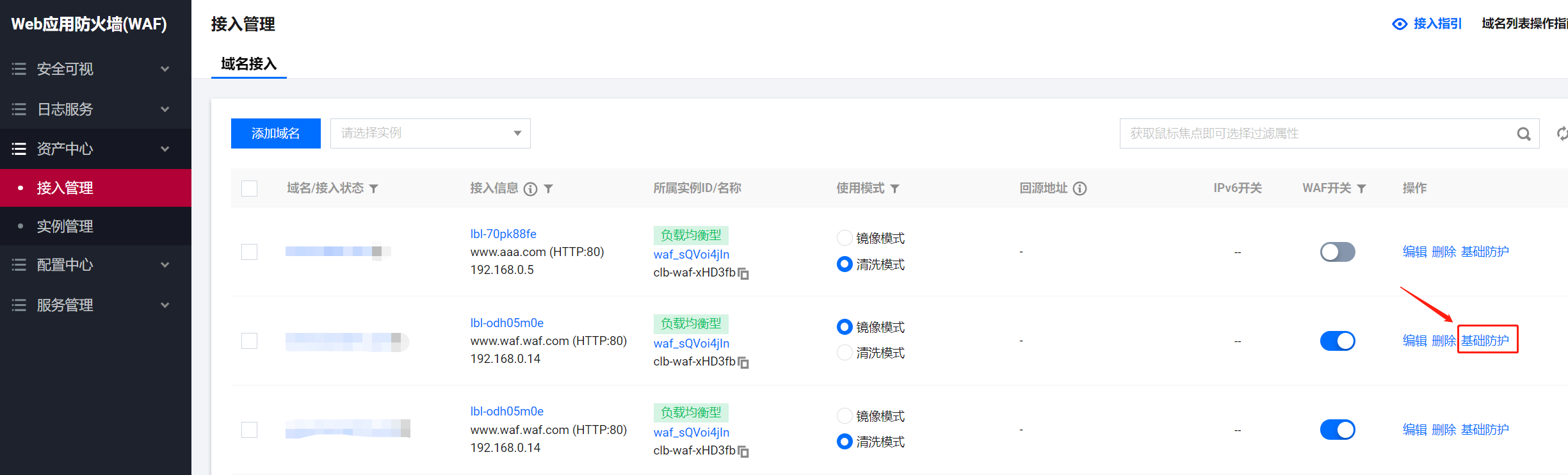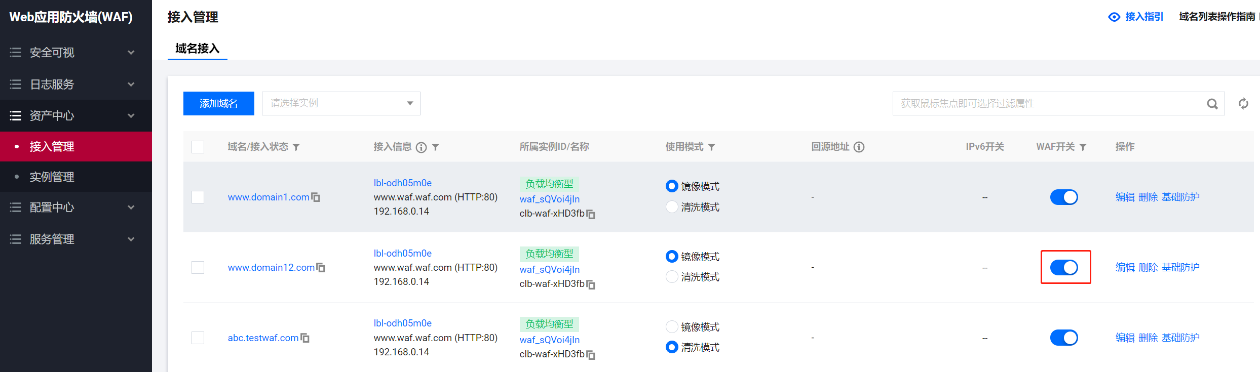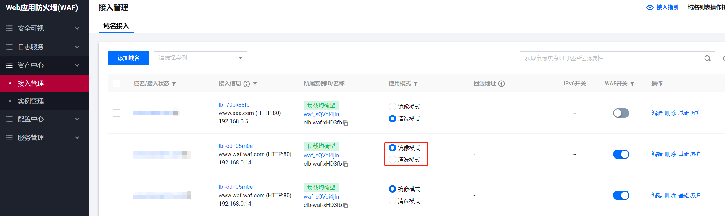 在控制台页面上将waf工作模式改为镜像模式。