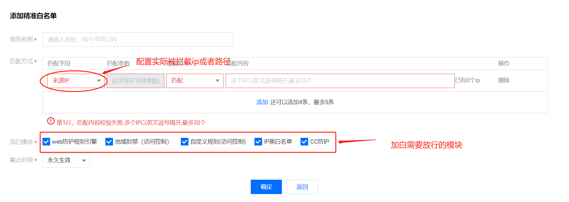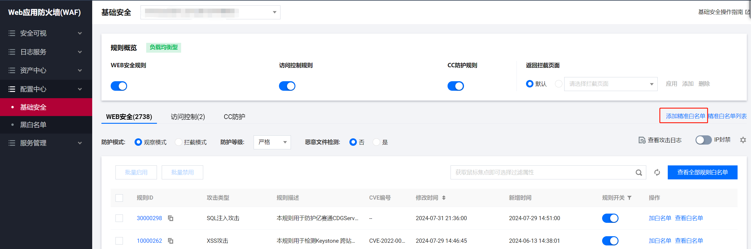应急手段一:添加白名单(特定白名单放行,其他访问命中规则则拦截)