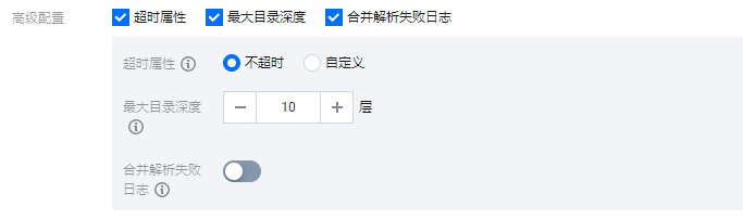 - 不超时:日志文件永不超时 - 自定义:自定义日志文件的超时时间 |