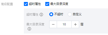 | 最大目录深度 | 采集路径中的/**/代表查找所有子目录中的文件。但是,在查找过程中,如果不想搜索太深的目录,可以使用"最大目录深度"配置项来限制搜索深度 |