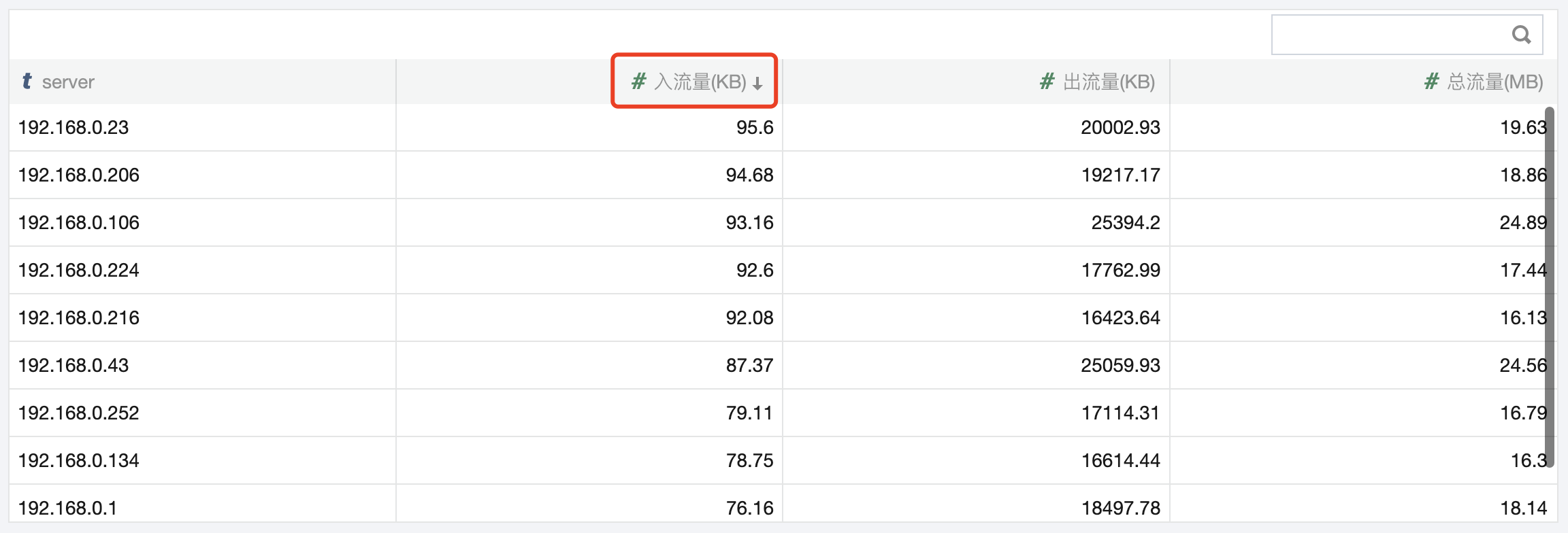 单击需要排序的列的表头字段名,将会按照升序排列。再次单击,切换为降序排列。