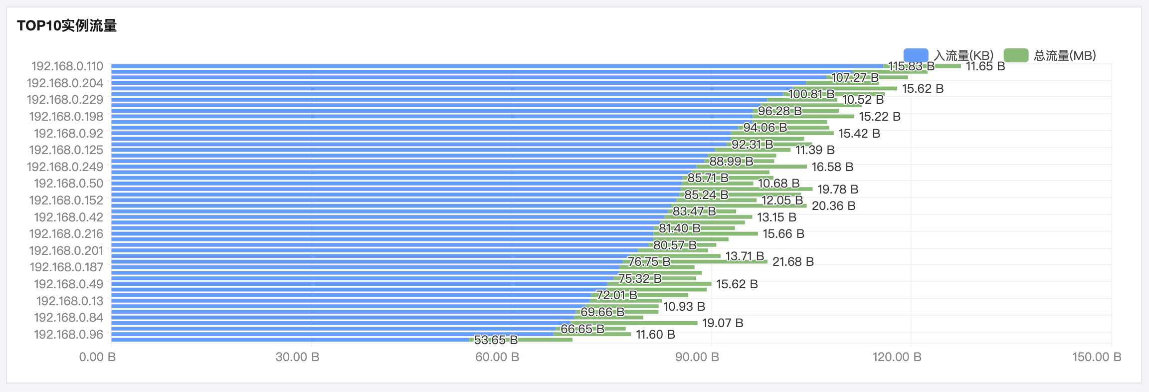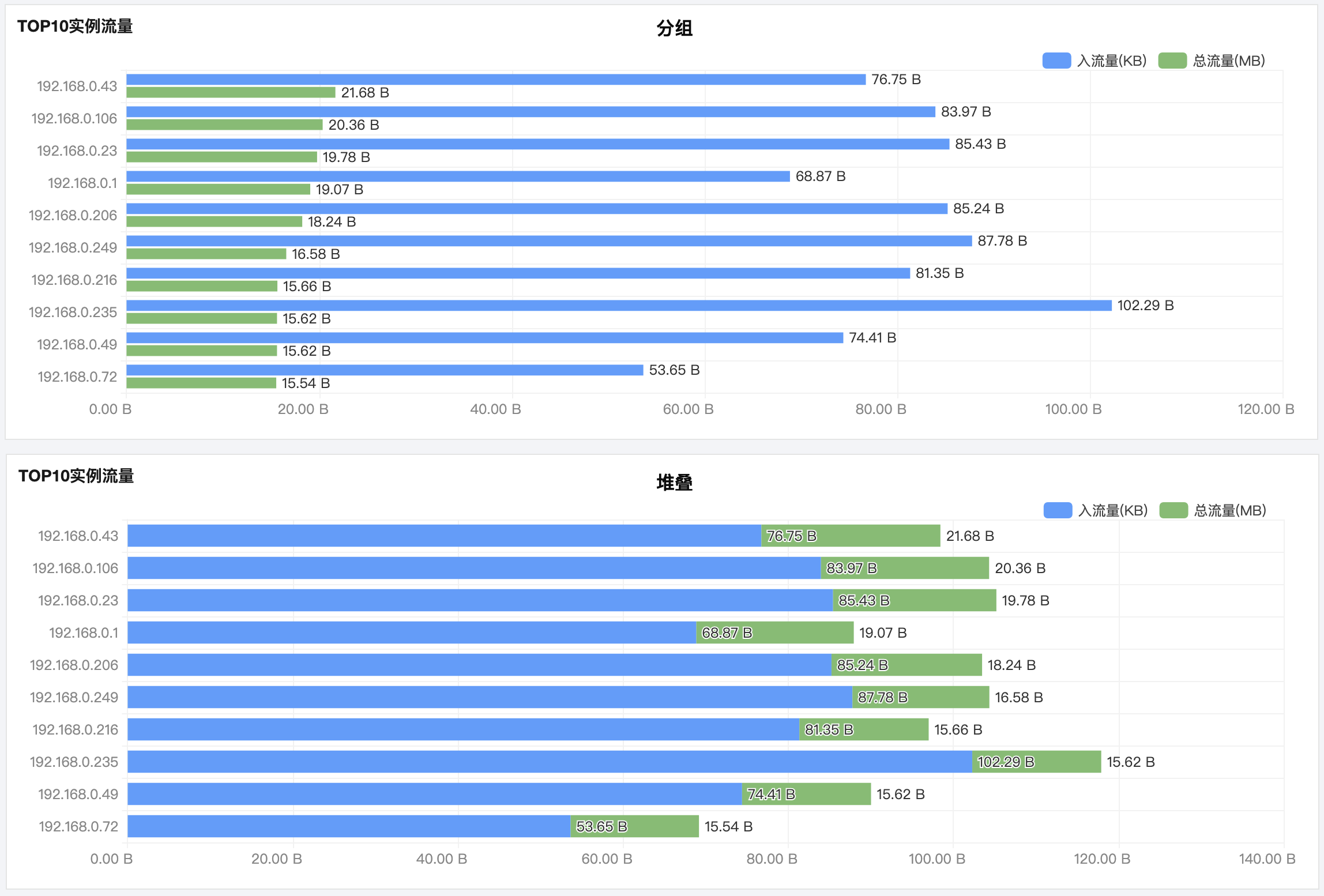 | 柱状图 | - 方向:控制条柱的方向,水平方向即为条形图,垂直方向为柱形图。 - 显示数值:控制是否显示每个条柱的数值标签。 - 条柱模式:支持条柱分组或堆叠显示。 - 排序方式:控制条柱的排序方式,支持按照指标升序与降序排列。在有多个指标时需要指定一个用于排序的指标,默认不排序。 |