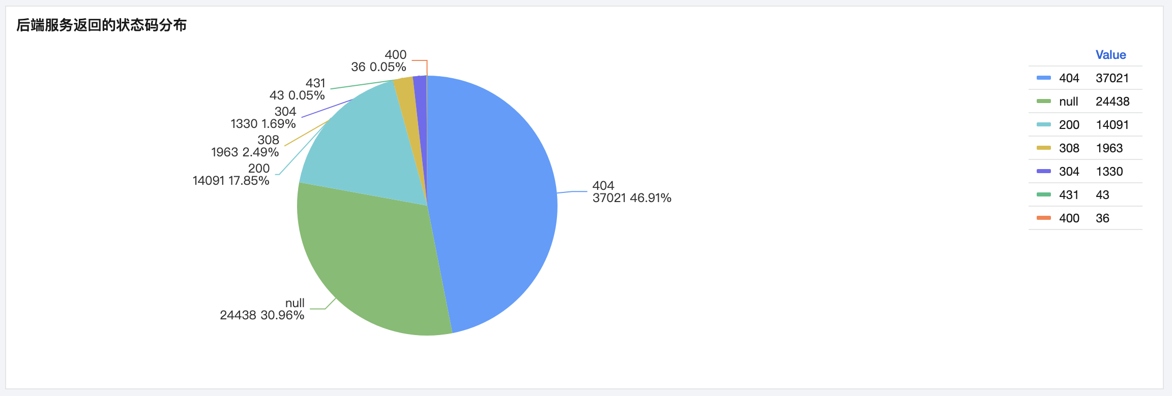 饼图描述的是不同分类的占比情况,通过扇区大小来衡量各分类项的占比情况。错误码占比情况分析等占比统计场景适用。