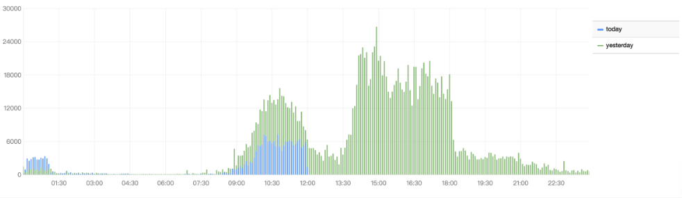 示例2:计算今天每5分钟网站访问量变化趋势与昨天同时间段的对比