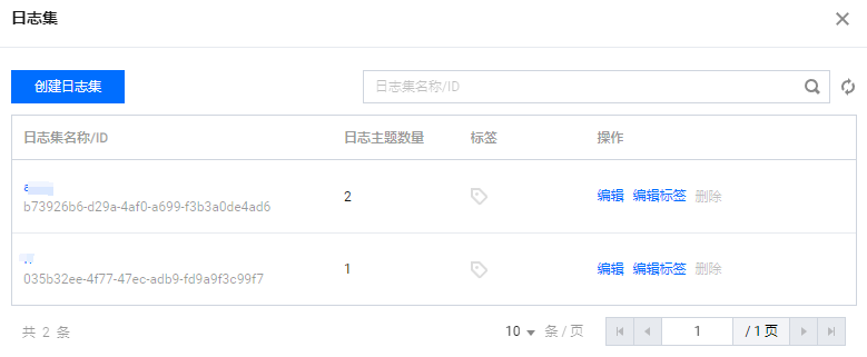 - 找到需要设置标签的日志集,在其右侧操作栏中,单击编辑标签。