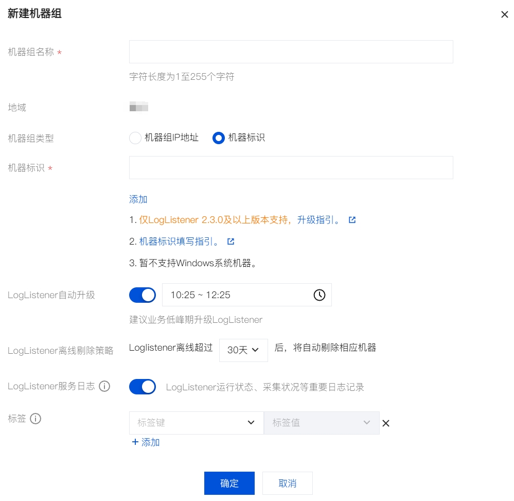 通过配置机器标识创建机器组仅支持 LogListener 2.3.0 及以上版本,低版本的 LogListener 需手动更新。