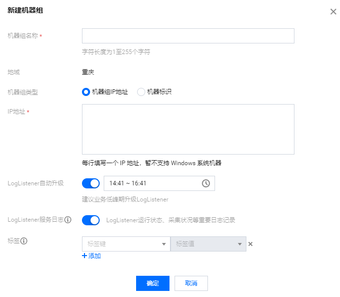 /etc/loglistener.conf中的 group_ip 保持一致。 - 若机器配置了机器标识,则仅可以通过 机器标识创建机器组,不可通过 IP 创建。 您可通过查看机器 LogListener 安装目录下