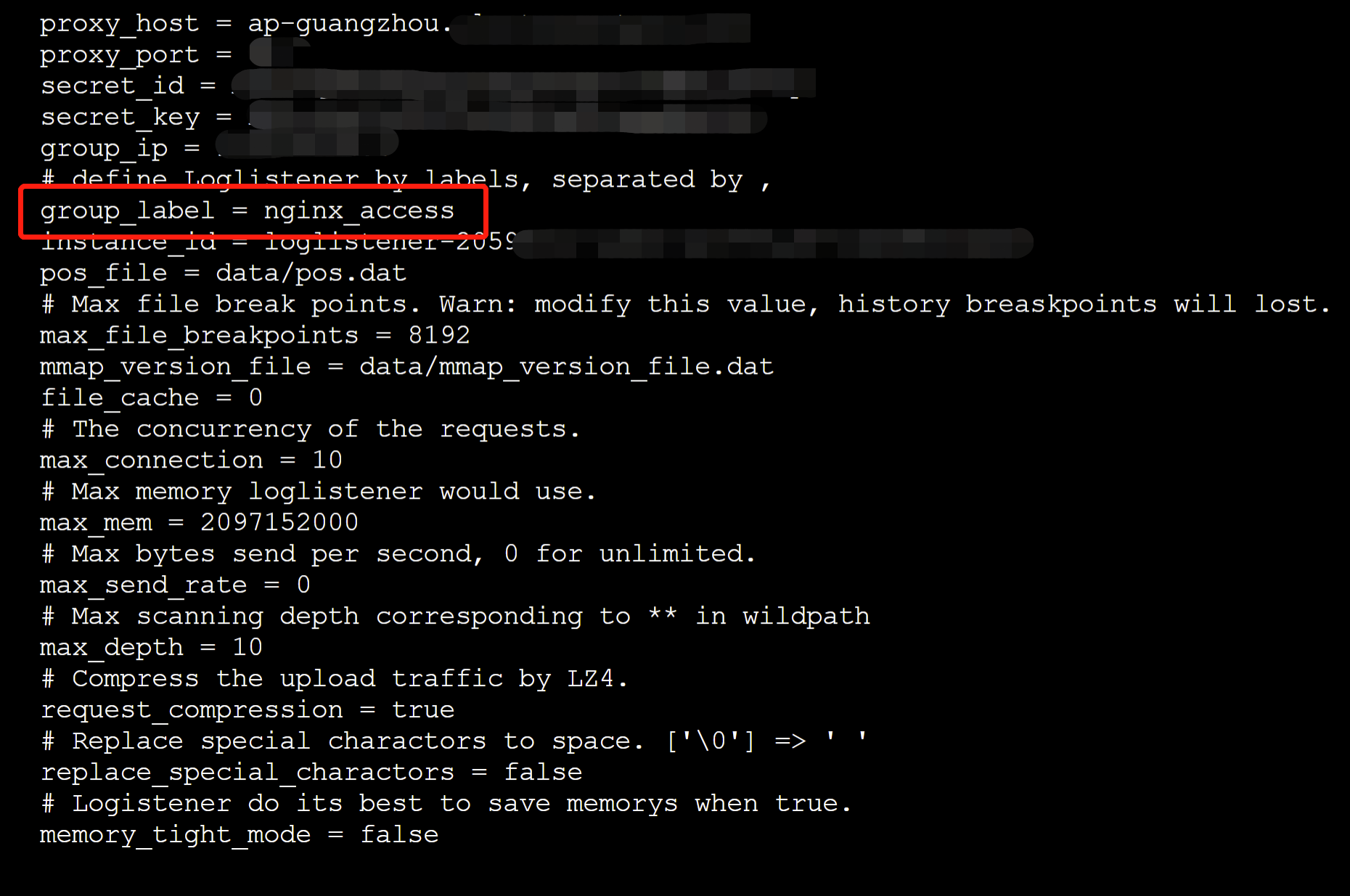 找到 group_label 参数,填写您自定义的机器标识(多个标识以英文逗号分隔)。