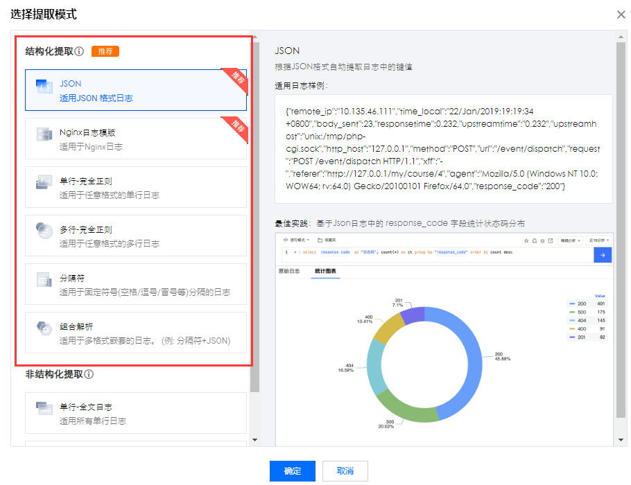 CLS 日志服务支持更强大的基于日志内容中的特定字段进行检索分析,可视化与监控告警。 该能力依赖对所采集日志进行格式化解析, 即在采集配置中选择结构化提取模式。若您的日志输出格式统一, 建议配置结构化提取模式, 以最大提升您的日志分析体验。