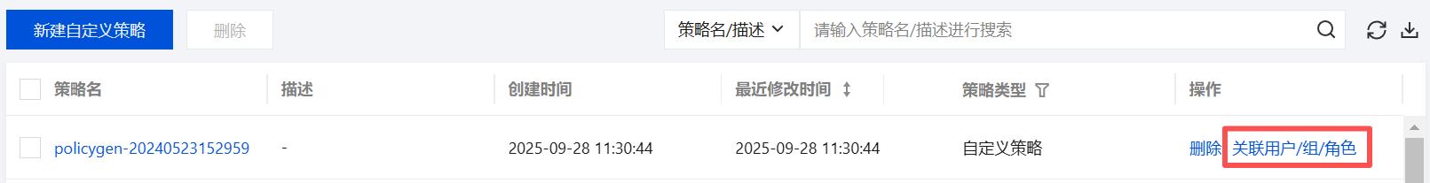 - 创建完成后,将刚才已创建的策略关联到子账号。