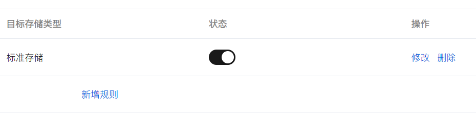 - 通过关闭状态按钮:通过关闭某个规则中的状态按钮暂时禁用当前规则,这一操作将暂停当前云内复制功能,已复制数据将被保留在目标存储桶中,源存储桶中的增量数据将不再复制到目标存储桶,如需再次使用,单击开启按钮即可。