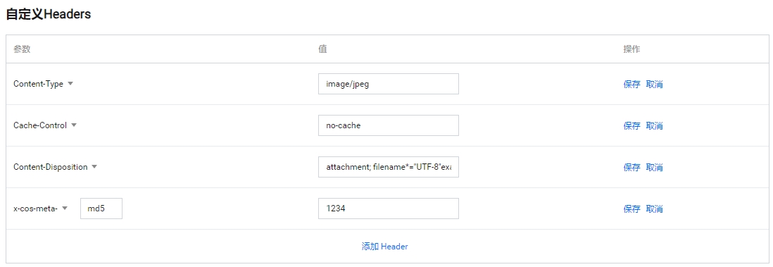 | x-cos-meta-[自定义内容] | 自定义内容 | 自定义内容 |