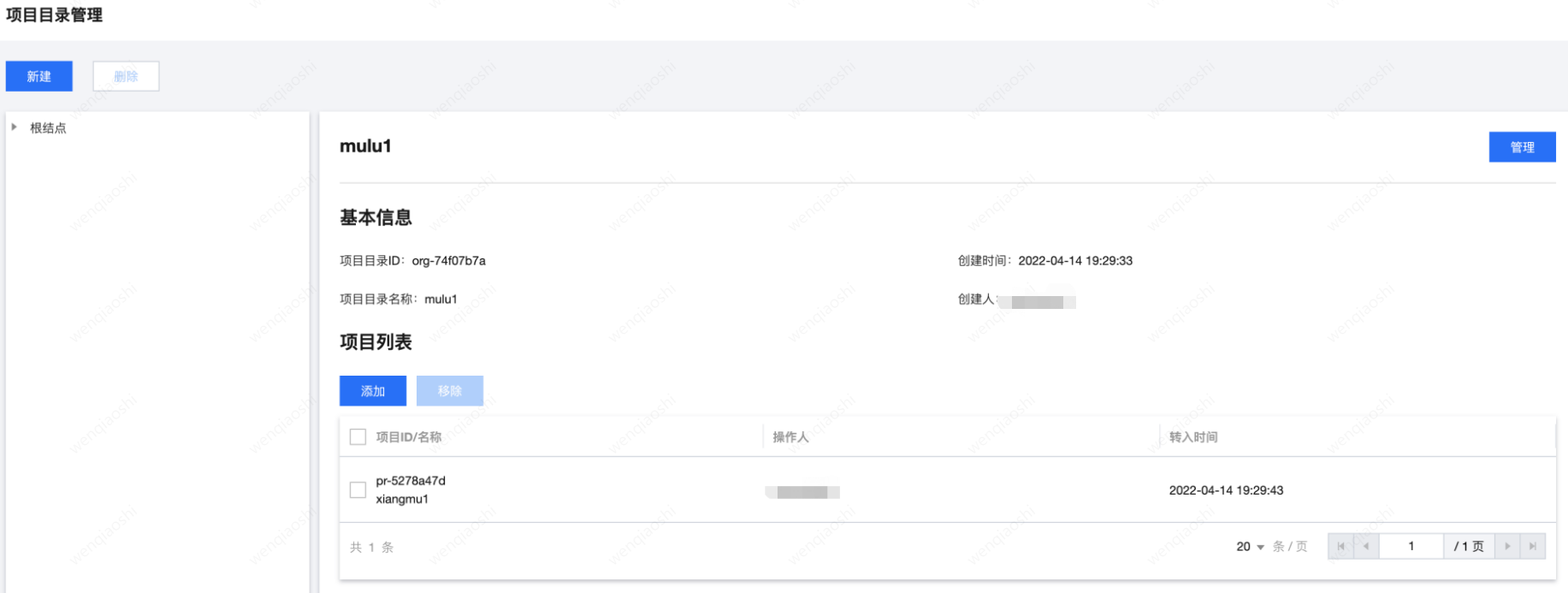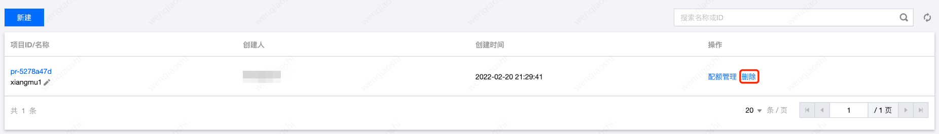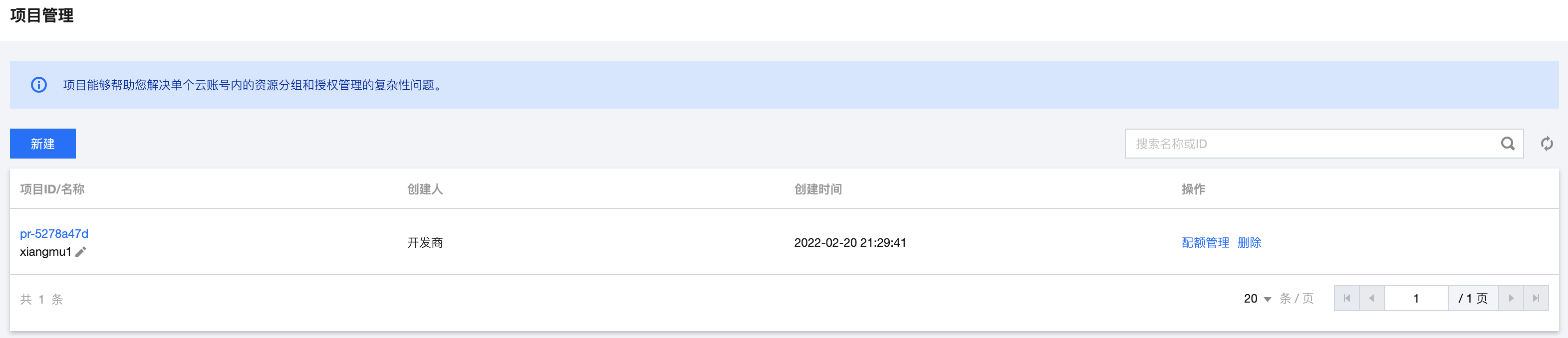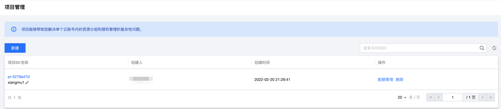 - 在已添加的项目页面,单击项目ID/名称下方的ID,对该项目进行资源管理。