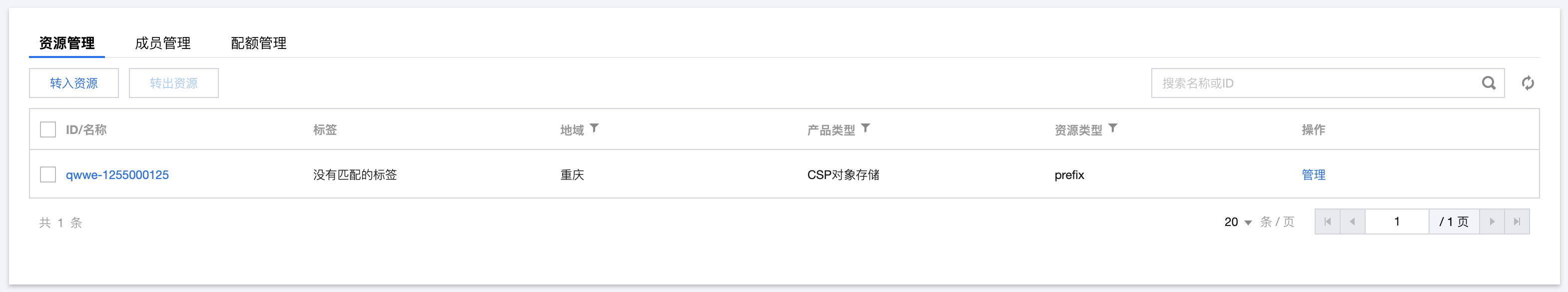 - 将当前项目的资源转移到其他项目,选中需要转出的资源后,单击转出资源,在新的弹窗选择目的项目后单击确认。弹出转出资源成功弹窗表示转出资源操作完成。