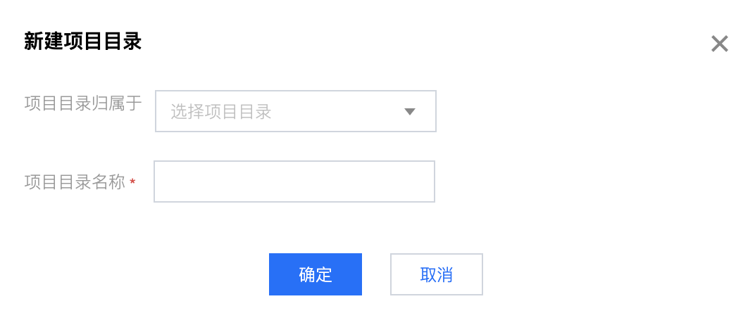 在弹出的窗口中选择项目目录归属,输入项目目录名称,单击确认。