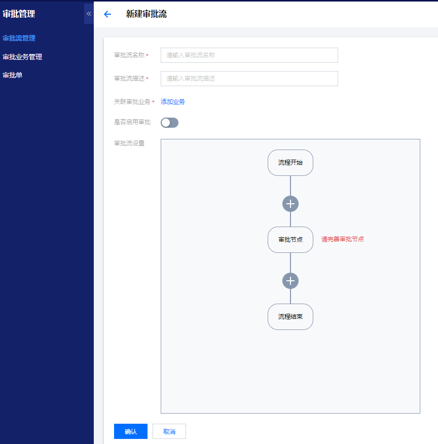 审批流用于基于审批业务来定义一个审批流程。审批流程里定义了用户在 页面触发指定的业务时,需要由哪些审批人来审批。