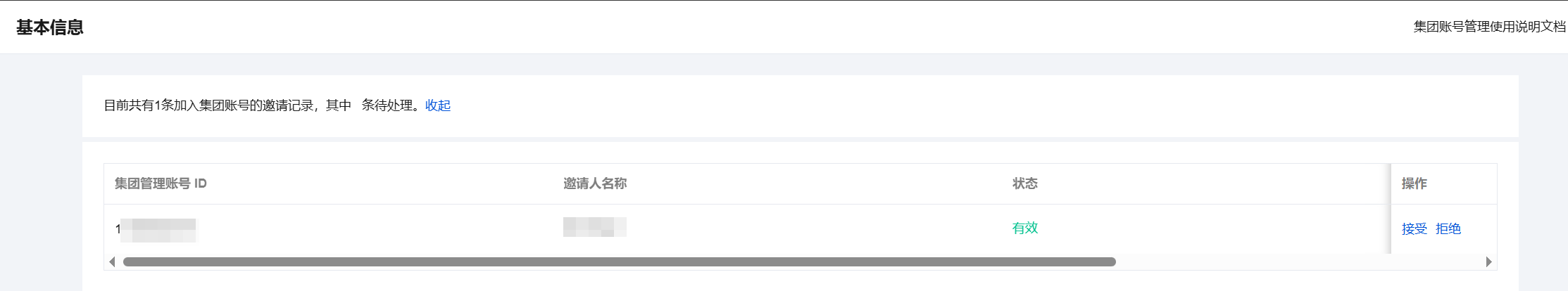 用户可以通过集团账号管理控制台,查看被组织邀请信息。