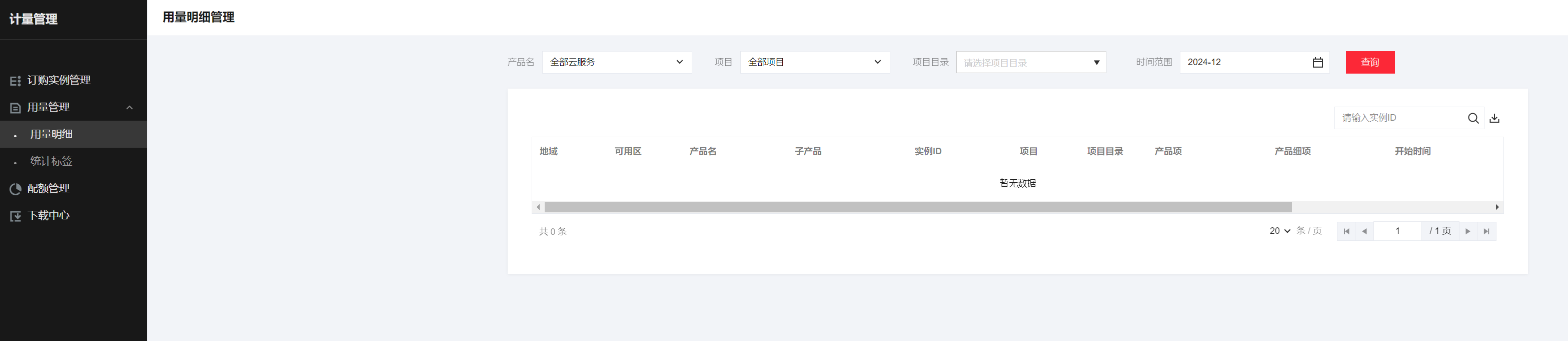 - 登录租户端,进入 管理与审计 > 计量管理 页面。