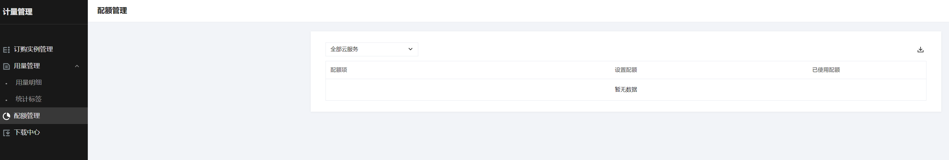 页面中,可查看配额情况和导出配额列表。