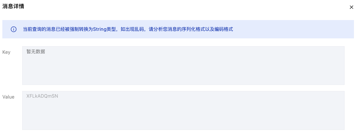 ProducerRecord中的timestamp。 - 操作:单击消息详情可查看消息的 key 和 value。