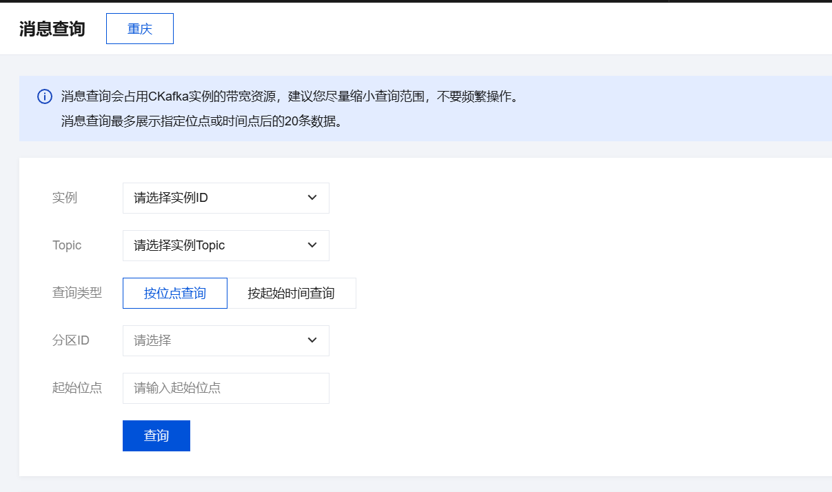 CKafka 控制台支持按位点查询和按时间查询两种方式查询消息,适用场景如下: