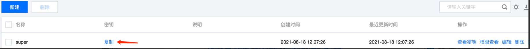 | token | 角色密钥,在角色管理页面复制密钥列复制。![]() |