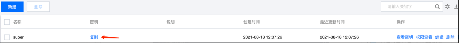 | SECRET_ID、SECRET_KEY | 云 API 密钥,登录访问管理控制台,在访问密钥>API 密钥管理页面复制。![]() |