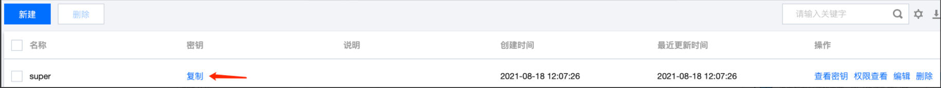 | $token | 角色密钥,在 角色管理 页面复制密钥列复制。![]() |