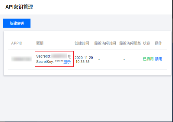 | $secretId、$secretKey | 云 API 密钥,登录 访问管理控制台,在访问密钥 > API 密钥管理页面复制。 ![]() |
