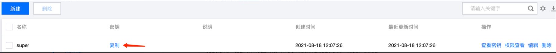 | token | 角色密钥,在 角色管理 页面复制密钥列复制。![]() |