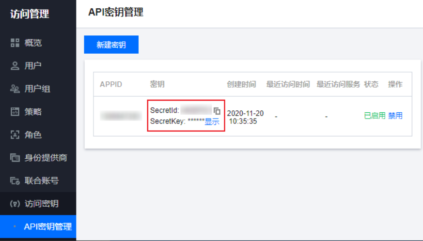 | SECRET_ID、SECRET_KEY | 云 API 密钥,登录 访问管理控制台,在访问密钥 > API 密钥管理页面复制。![]() |