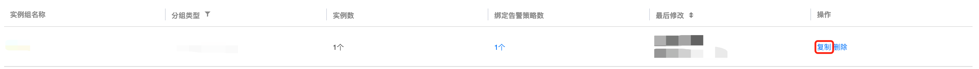- 找到您需要删除的实例分组,在其右侧操作栏中,单击【复制】。