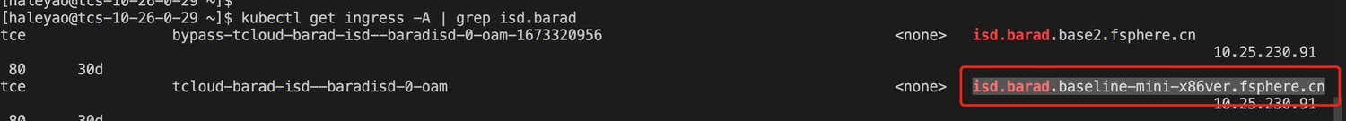 - 在master节点上执行kubectl get ingress -A | grep isd.barad
