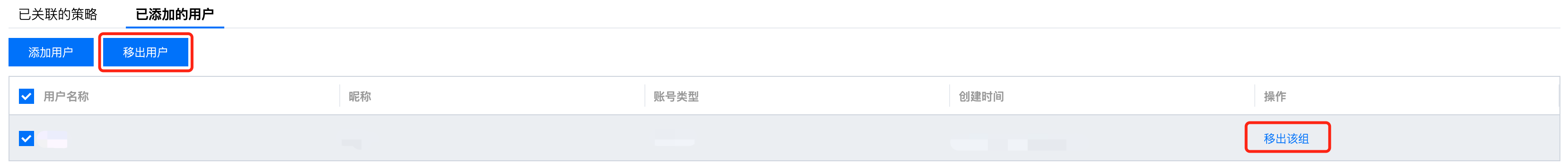 - 若您想添加用户,单击【添加用户】。若您想移出用户,选择您想移出的用户,单击【移出用户】或【移出该组】。
