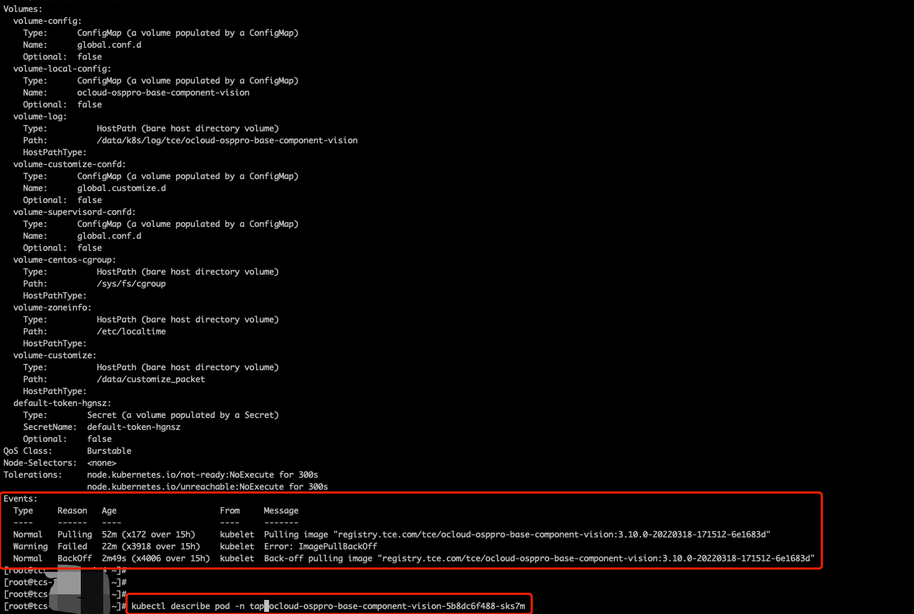 某些特殊的情况下,应用运维平台进行升级或者集群升级后,会看到应用运维平台 的组件 Pod 不是 Running 状态,出现了 Pod 异常,这个时候可以使用以下命令查看 Pod 的详情或者日志。