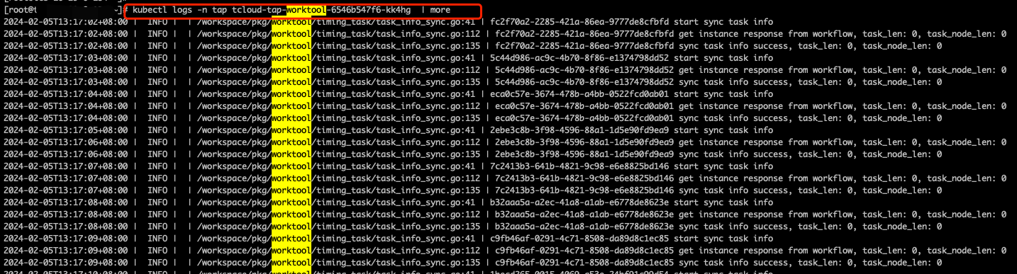kubectl logs -n tap ${POD_NAME}
